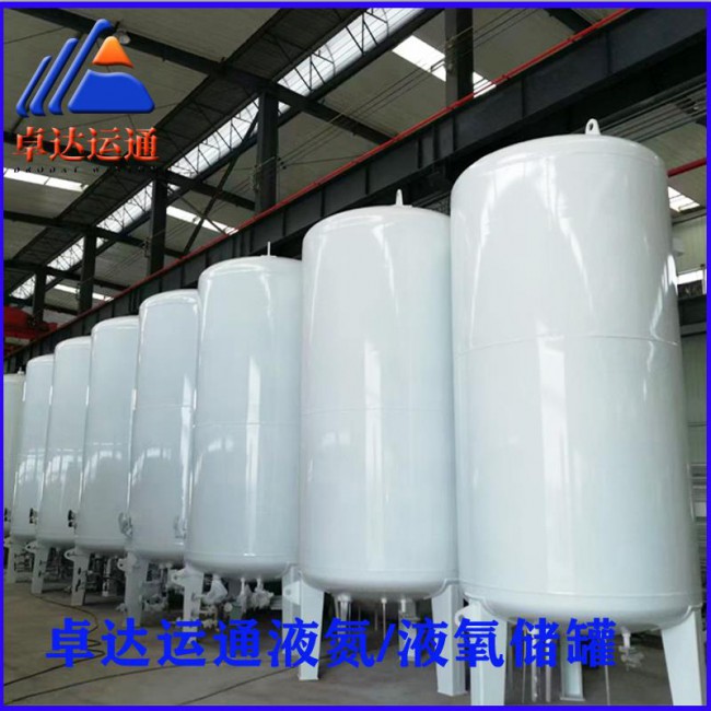 低温储罐又称液氮罐是立式或卧式双层真空绝热储槽,内胆选用材料为奥氏体不锈钢;外容器材料根据用户地区不同,按国家规定选用为Q345R,内、外容器夹层充填绝热材料珠光砂并抽真空。产品是国家技术监督局现场检验并出具压力容器监检证书,产品规格有5-100立方,工作压力0.8/1.6Mpa。 氮气是氮肥工业的主要原料。氮在冶金工业中主要是用作保护气,如轧钢、镀锌、睹铬、热处理、连续铸造等都要用它作保护气。此外,向高炉中喷吹氮气,可以改进铁的质量。广泛应用于电子工业、化学工业、石油工业和玻璃工业。
